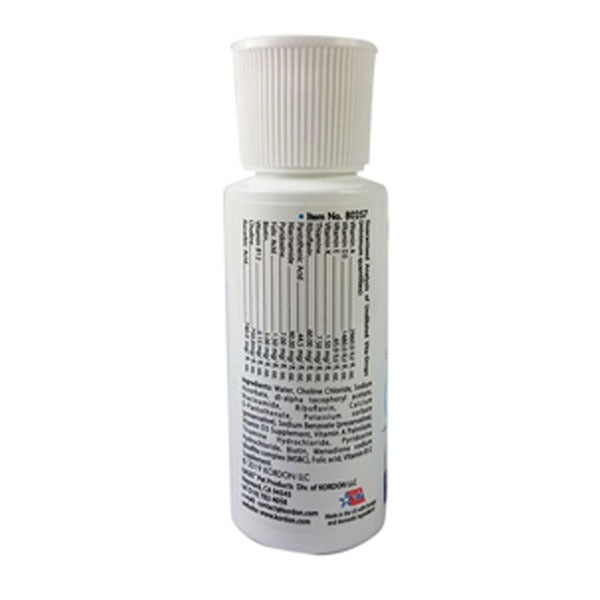 Ingredients: Water; Choline Chloride; Sodium Ascorbate; d-a-Alpha Tocopherol Acetate; Niacinamide; Riboflavin; Dl-Pantothenic Acid; Potassium Sorbate (Preservative); Sodium Benzoate (Preservative); Vitamin D3 Supplement; Vitamin A Palmitate; Thiamine Hydrochloride; Pyridoxine Hydrochloride; Biotin; Menadione Sodium Bisulfate Complex (MSBC); Folic acid; Vitamin B12 SupplementGuaranteed Analysis per Fluid Ounce (28.3 gr) of undiluted Vita-Drops (minimum quantites):Vitamin A - 2960 IUVitamin D3 - 1480 IUVitamin E - 65 IUMenadione (Vitamin K) - 1.50 mgThiamine(Vitamin B1) - 7.50 mgRiboflavin (Vitamin B2) - 60.00 mgD-Panthothenic Acid - 44.50 mgNiacin - 90.00 mgPyridoxine (Vitamin B6) - 7.00 mgFolic Acid - 1.50 mgBiotin - 3.00 mgVitamin B12 - 0.15 mgCholine - 750 mgAscorbic Acid (Vitamin C) - 740 mg.