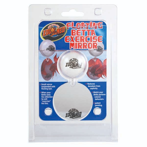 Small Mirror Suspended with floating ball. When your Betta sees his reflection he will exercise his fins. Reduces boredom from captivity. Watch your beta perform natural behaviors.