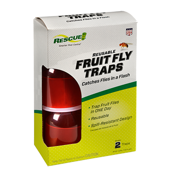 Rescue Fruit Fly Trap 2 PK uses a food-based lure and color proven attractive to fruit flies. Simply add the liquid attractant to the trap and it starts catching fruit flies within minutes. Each trap comes with a 30-day supply of attractant and is reusable with RESCUE! Fruit Fly Trap Attractant Refills. With more holes and a higher concentration of an attractant, our exclusive design is proven to catch adult fruit flies eight times better than competitive traps.