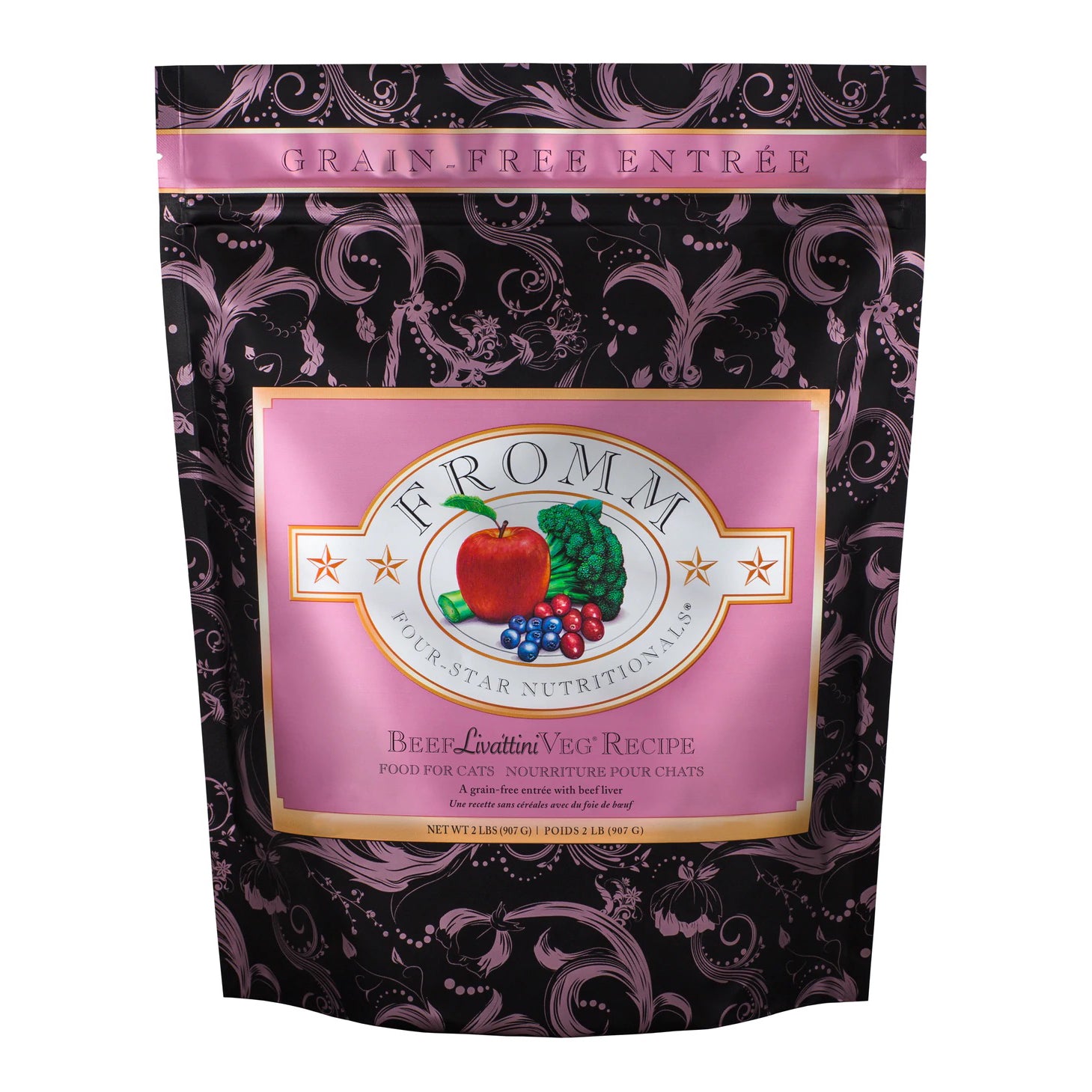 Fromm Four-Star Cat Food Beef Livattini Veg 4 LB – a delectable and nutritious choice for your feline friend. Crafted with care in controlled batches at our family facility, this rich, grain-free entrée features a tantalizing blend of beef liver, dried egg product, salmon meal, and an array of wholesome fruits and vegetables. Fromm Four-Star offers cats a variety of entrées, and this formula is no exception, providing a well-rounded and balanced diet for your beloved pet.