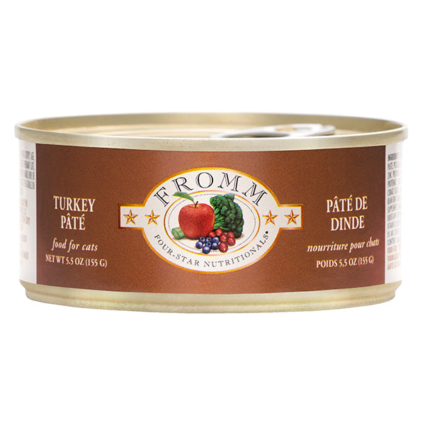 Introducing Fromm Cat Food Can Turkey 5.5 OZ – a premium feline feast meticulously crafted by Fromm Family Foods, a trusted fifth-generation family-owned-and-operated artisan pet food company. Made with love and expertise at Fromm's hands-on facility, this delectable cat food boasts high nutrient digestibility and utilization, ensuring your feline friend receives the best in every bite. Fromm prioritizes safety with third-party pathogenic bacteria testing on all production batches and incorporates their specially developed blend of probiotics for optimal digestive health.