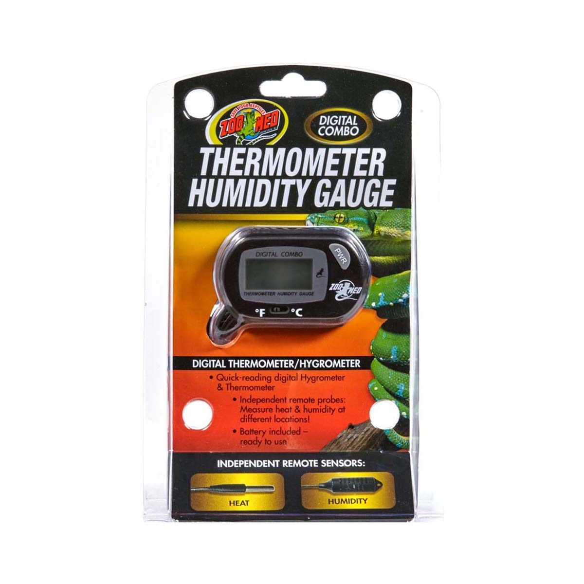 Quick-readying digital Hygrometer & Thermometer. Independent remote probes: Measure heat & humidity at different locations! Battery included - Ready to use. Two 39in (one meter) long independent probes and sensors allow for monitoring of heat and humidity at different locations. Use in terrariums, incubators or other pet animal applications. Waterproof temperature probe can be used in air or submerged in water. (Humidity probe not waterproof, do not submerge in water.) One LR44 1.5v batter and mounting suction cups included.