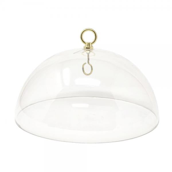 12 inch Hanging Baffle. Durable dome resists squirrel damage. Protects feeder and seed from squirrels and weather. Easy to assemble. All hardware included. Contents: 1 3/4 inch thread loop, 1 1 1/8 inch X number 8 open eyebolt, 1 number 8 locknut, 1 clear polymer dome. Assembly Instructions: 1. Tighten the number 8 locknut at the end of the threads on the number 8 eyebolt. 2. Hold the loop at the top of the dome and screw the number 8 eyebolt through the dome into the loop. 3. To hook the feeder to the dome, hold feeder at an angle to slip eyebolt of feeder over eyebolt of dome.