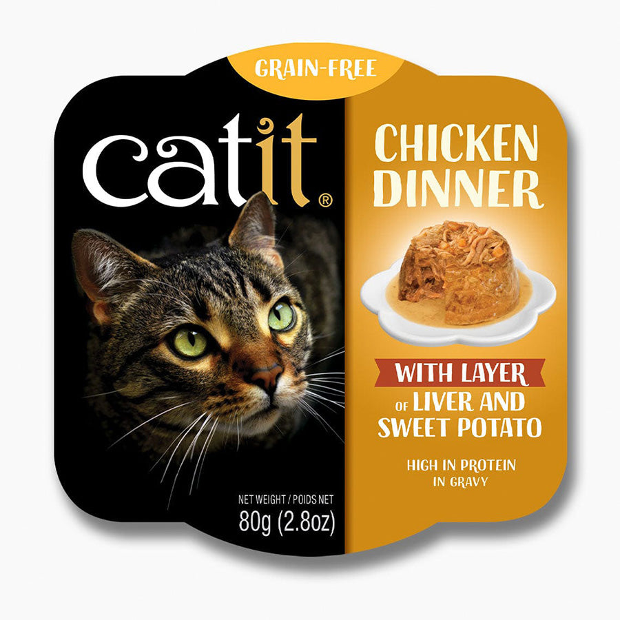 Catit Chicken Dinner Liver Sweet Potato 2.8 OZ – the ultimate delight for your feline friend's taste buds! Crafted with care, this dual-layered wet food is a premium-quality blend of fresh ingredients swimming in luscious gravy. Packed with high protein and grain-free goodness, it ensures precisely balanced nutrition for your beloved cat. Unlike other options, Catit Chicken Dinner is as natural as home-cooked meals, with added vitamins and minerals to keep your cat happy and healthy.